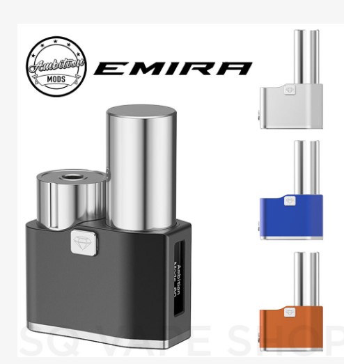 Der Ambition Mods Emira Mod benötigt für den Betrieb einen 18650 Akku (nicht inbegriffen), es gibt optional auch noch eine separat erwerbbare Akkuhülse für 18350 Akkus. Der Akkuträger liefert im Power Modus bis zu 60W und bietet nebst dem regulären Power Modus auch noch Temperaturkontrolle (SS, Ni, Ti). Während einige Hersteller das Display bei SbS Mods an der Unterseite platzieren, ging Ambition Mods bei dem Emira SbS Mod einen anderen Weg und brachte das Display an der Rückseite an. Die Tasten für Plus/Minus wiederum befinden sich an der Unterseite und der Feuertaster ist so an der Front platziert, dass man ihn mit dem Ringfinger drücken kann.