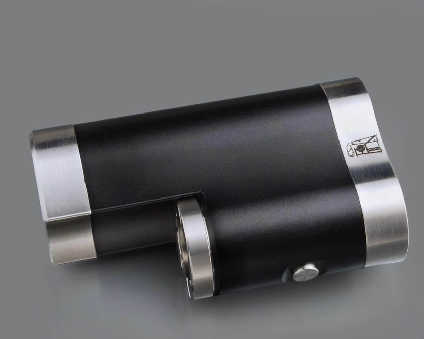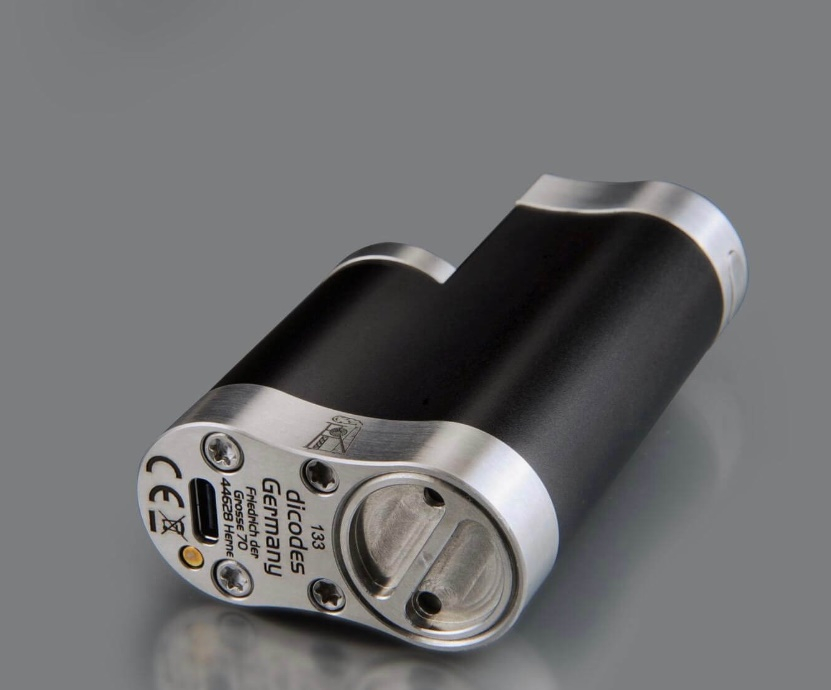 Mit dem Verdampferanschluss neben dem Akkufach ist die Dani SBS 21700 super kompakt und taschenfreundlich. Das Ober- und Unterteil des Geräts besteht aus gebürstetem Edelstahl und das Gehäuse aus eloxiertem Aluminium. Bitte beachten Sie: Die Eloxalfarbe des Gehäuses kann im Farbton leicht von den Fotos abweichen. Der 510er Anschluss an diesem Gerät hat einen abnehmbaren Abschnitt, der mit einem umgekehrten Gewinde versehen ist, so dass Sie die Luftlöcher an Ihrem Tank leicht ausrichten können. Es handelt sich um einen 25 mm breiten Anschluss, aber bitte beachten Sie, dass einige auf dem Markt erhältliche 25 mm-Tanks aufgrund von breiteren Teilen wie z.B. der Luftstromsteuerung oder vorstehenden Abschnitten an den Verdampfern möglicherweise nicht passen.