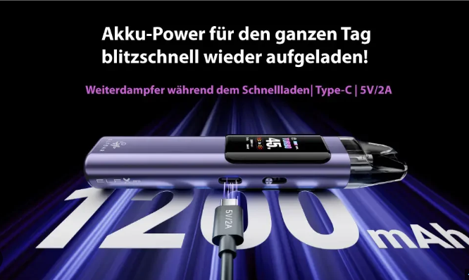 - Leistungsstarker 1200mAh Akku für langanhaltenden Genuss