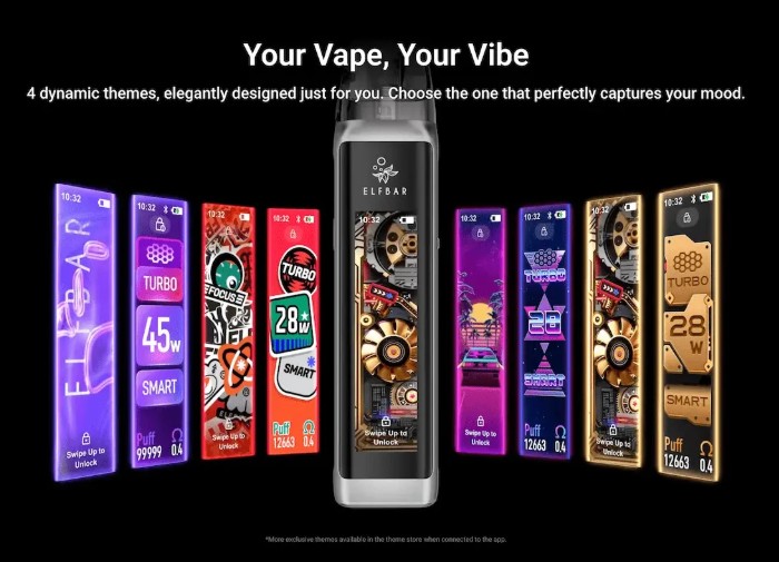 Der Elfbar Elfx Ultra überzeugt mit einer Vielzahl von innovativen Features, die dein Dampferlebnis auf das nächste Level heben. Als erstes Fullscreen Pod System von Elfbar mit anpassbarer Benutzeroberfläche ermöglicht es dir volle Kontrolle und individuelle Gestaltung.