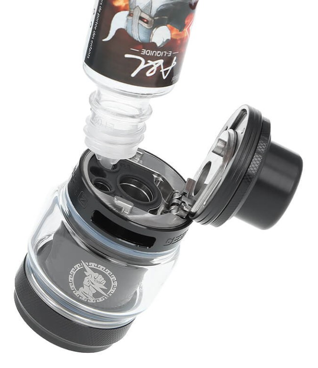 - Innovative Flip-Top-Funktion: Schnelles, sauberes Top-Fill-System – Deckel per Knopfdruck öffnen, Liquid einfüllen, fertig.