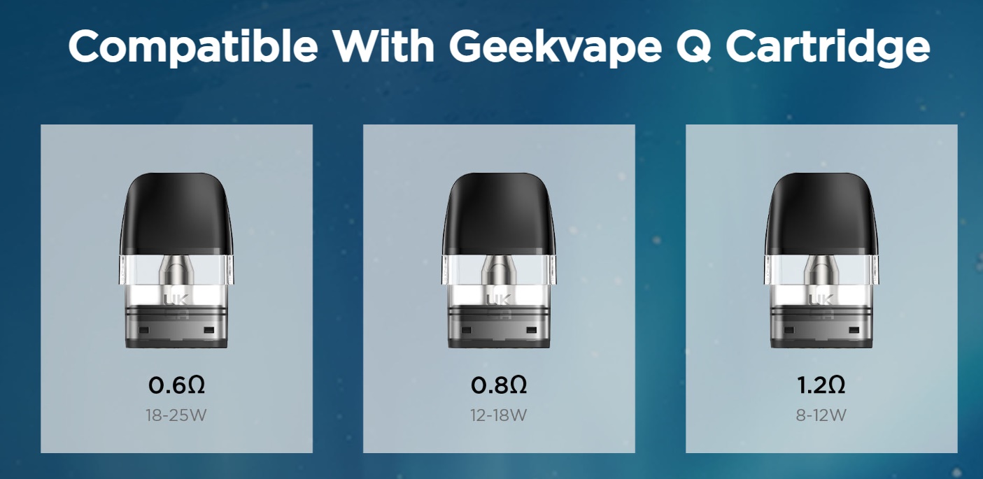 Mit dem Wenax Q Pro hat Geekvape nun auch eine Pro-Version seines beliebten Wenax Q Podsystemes auf den Markt gebracht. Eines der Features des Geekvape Wenax Q Pro ist das haptische und optische Feedback beim einsetzen des Pods. Das Gerät bestätigt den Kontakt durch Vibration und zeigt auf dem Display nicht nur den eingesetzten Pod an, sondern auch dessen Widerstand. Im Wenax Q Pro können alle Q Pods von Geekvape genutzt werden, mitgeliefert werden jeweils ein 0,6 Ohm 2ml und ein 0,8 Ohm 2ml. Zudem hat Geekvape neue Pods mit 3ml und seitlicher Füllöffnung an den Start gebracht, diese gibt es in den Widerständen 0,4 Ohm, 0,6 Ohm und 0,8 Ohm.