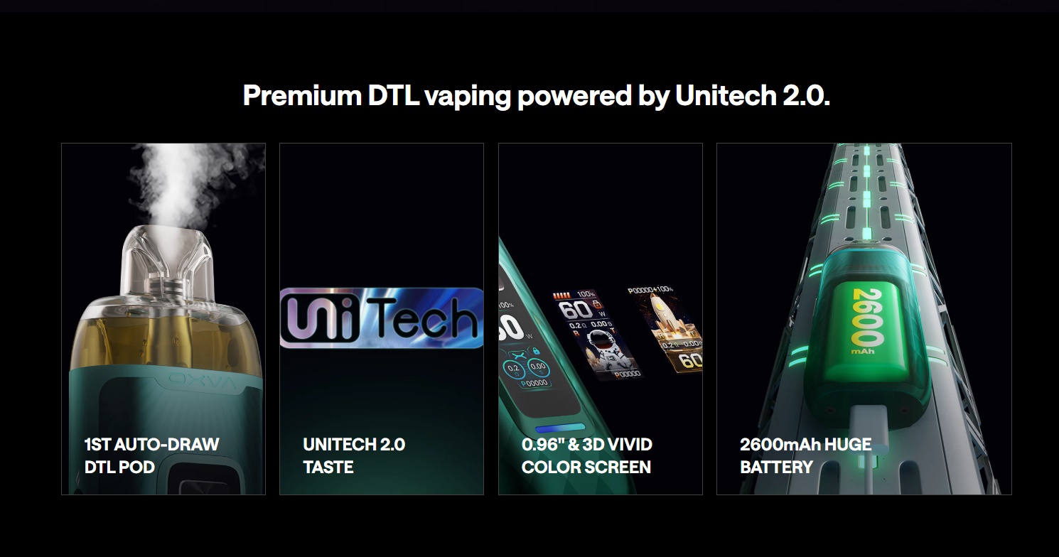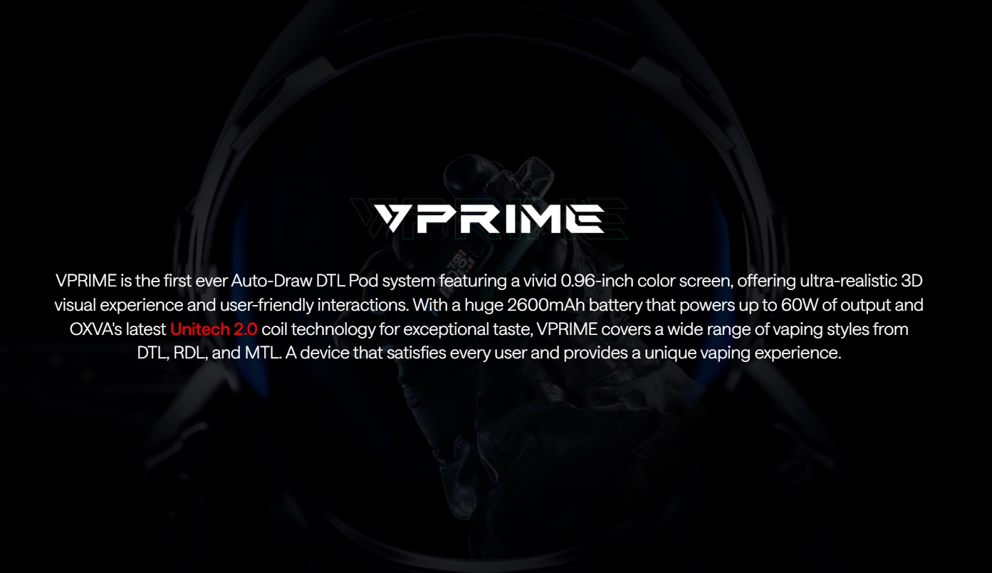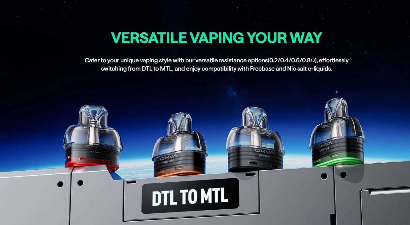 Aus dem Hause Oxva stammt das Vprime Pod Kit, welches sich an Dampfer mit dem Wunsch nach einem potenten Podsystem richtet. Der Oxva Vprime richtet sich eher an DL Fans, mit dem 0,2 Ohm Pod ist eine Leistung von bis zu 60W möglich. Der Pod des Oxva Vprime nimmt 5ml Liquid auf und besitzt dasselbe Top Filling wie die Xlim V3 Pods. Das Kit wird mit dem 0,2 Ohm und dem 0,6 Ohm Pod geliefert, optional gibt es noch einen 0,4 Ohm und einen 0,8 Ohm Pod (MTL). Die Leistung des Vprime lässt sich von 5W bis 60W einstellen.