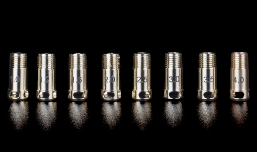 - Airflow Pins: 1mm, 1,2mm, 1,6mm, 2mm, 2,5mm, 3mm, 3,5mm, 4mm
