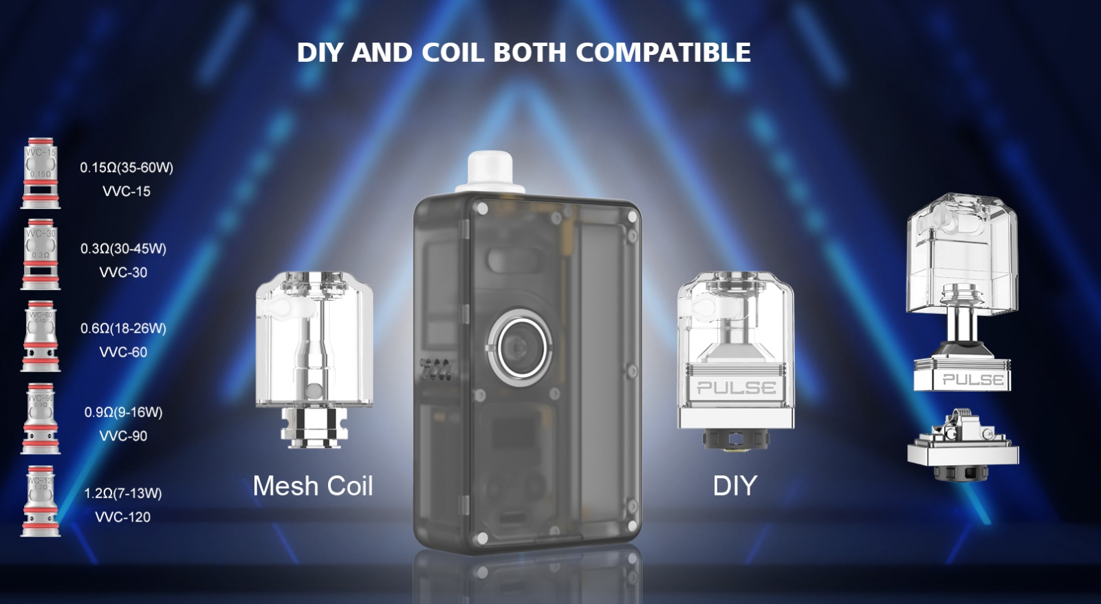 Hinweis: Wir empfehlen jedoch die Nutzung eines externen Ladegerätes. Vandy Vape bietet eine Vielzahl an Teilen, um die Pulse AIO optisch dem eigenen Geschmack nach anzupassen.