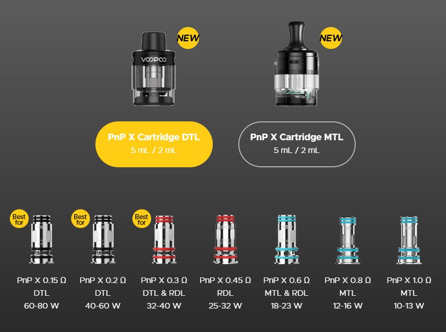 Im Lieferumfang: PnP X DTL Kartusche (5 ml), Top Airflow, 810 Drip Tip, zwei PnP X Coils: